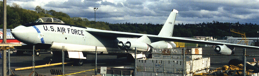 The tail number, 17066, indicates this plane is a B-47E built by Boeing and given the Air Force serial number 51-7066.